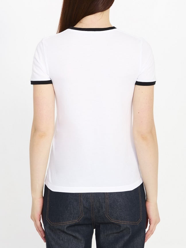 胸にアナグラム刺繍が入った白黒の軽量コットンジャージー製の半袖クルーネックTシャツ。