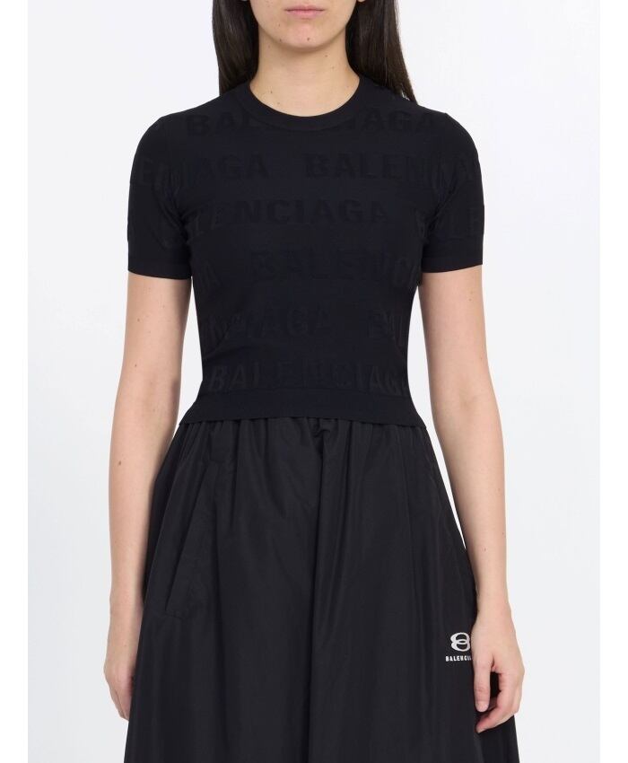 総柄ロゴクロップドプルオーバー By:BALENCIAGA(バレンシアガ)