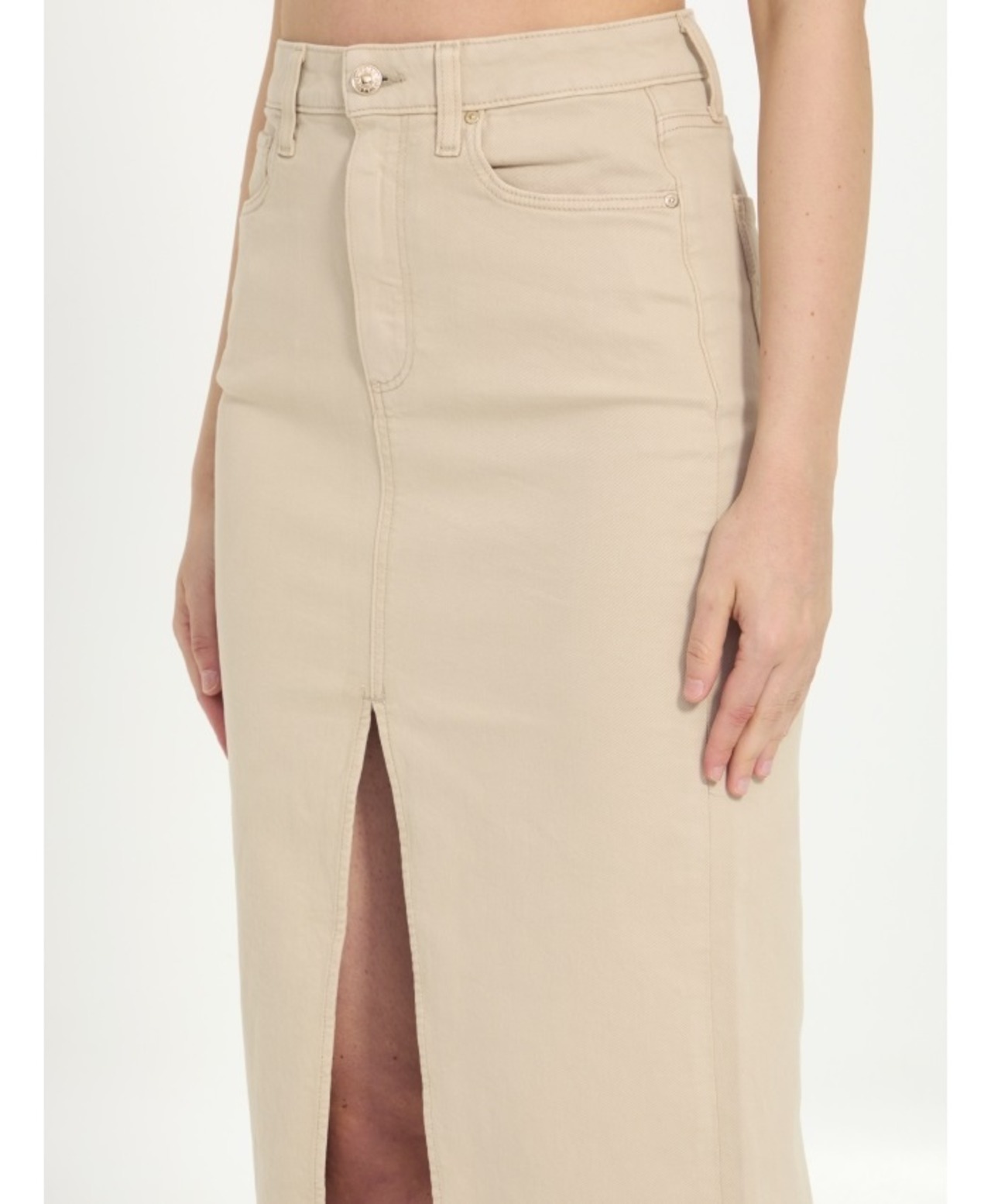 アンジェラのミディスカート(ベージュのコットンデニム)。