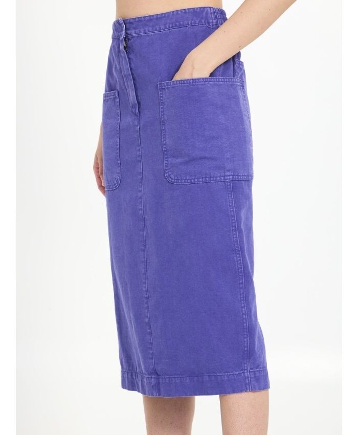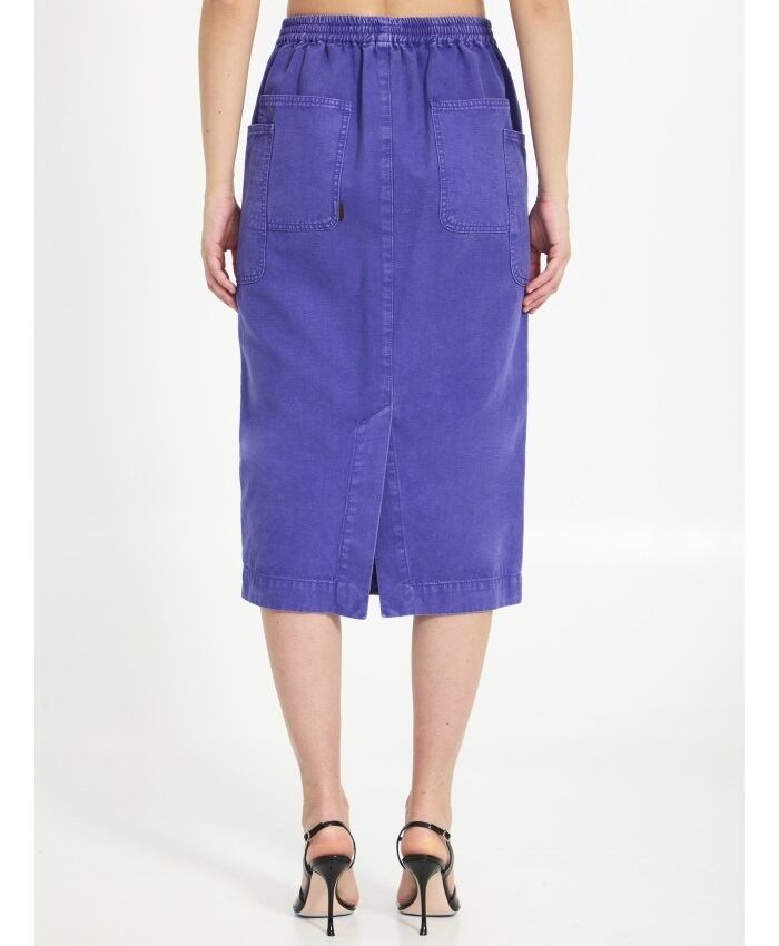 パープルのコットン キャンバス製カーディフ ペンシル スカート。