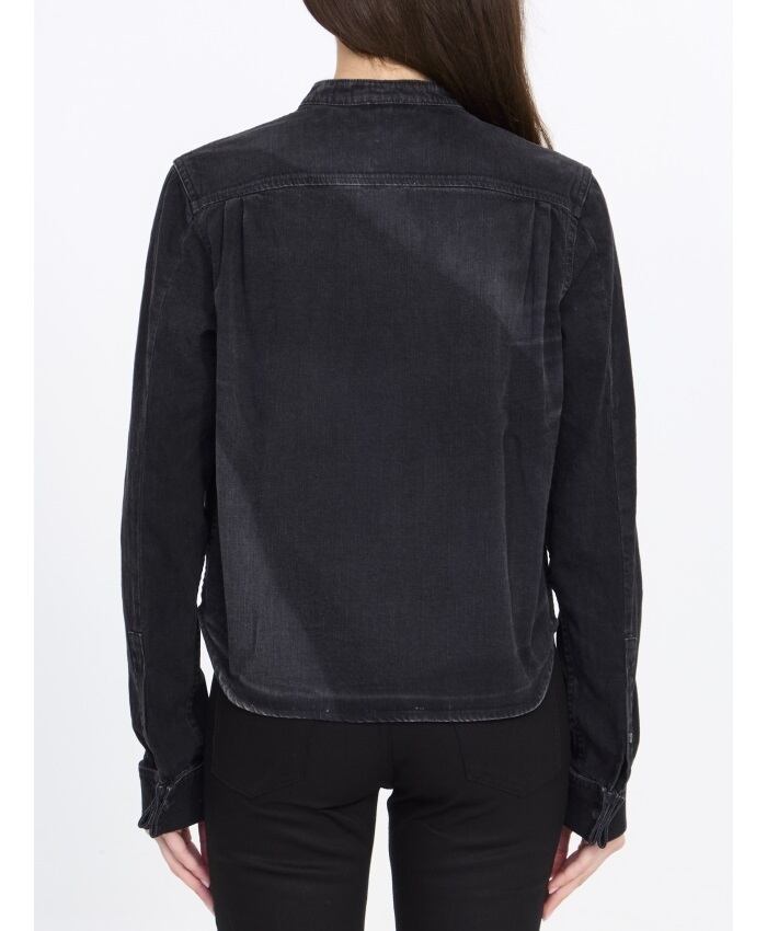 プリーツインサートが付いた、ウォッシュアウトブラックのコットンシャツ。