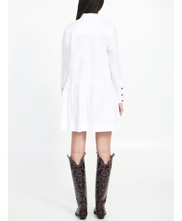 ホワイトのオーガニックコットンポプリン製のミニシャツドレス。