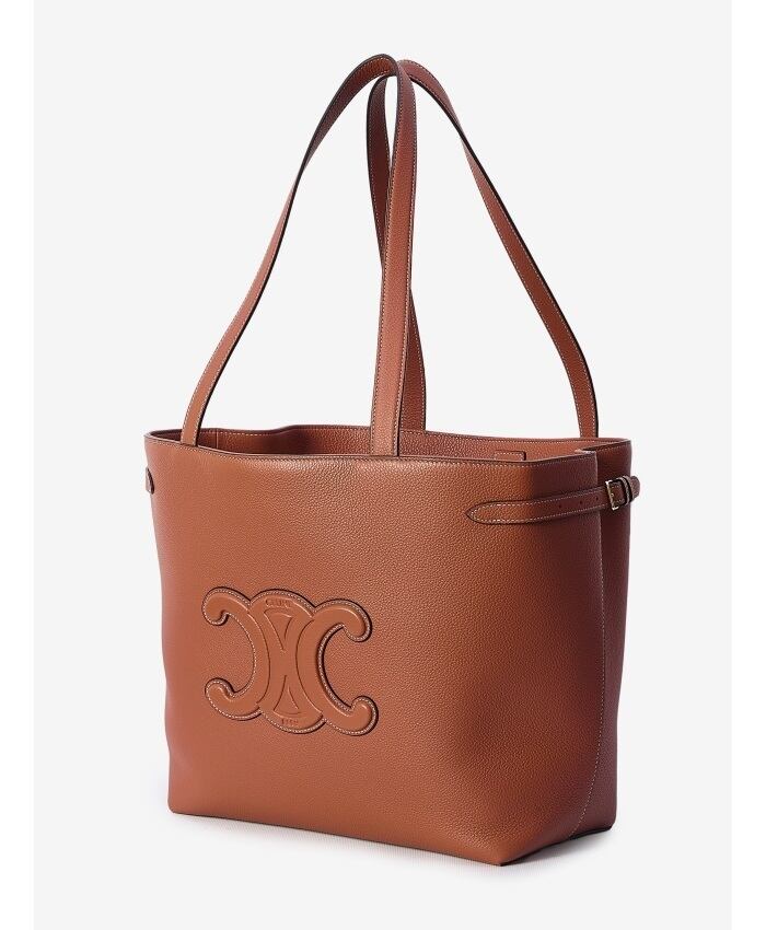 前面にセリーヌ トリオンフのパッチが付いた、ブラウン グレイン カーフスキンの Cabas Anais バッグ。