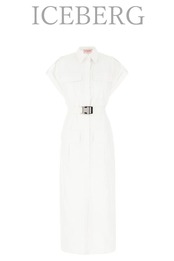 ホワイトのポリエステル混紡シャツドレス By:ICEBERG(アイスバーグ)