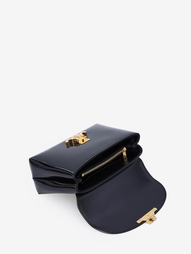 光沢のあるブラックのカーフスキン製ティーン ニノ バッグ。