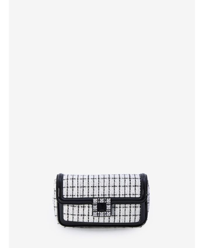 Viv' Jeu De Fille クラッチは、黒と白の生地に光沢のある黒のレザーのトリムが施されています。
