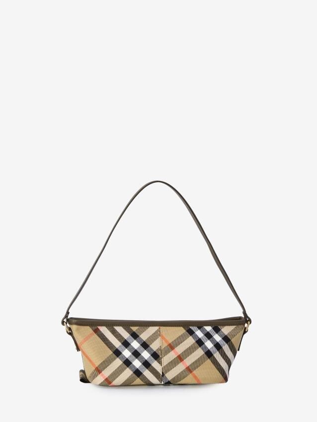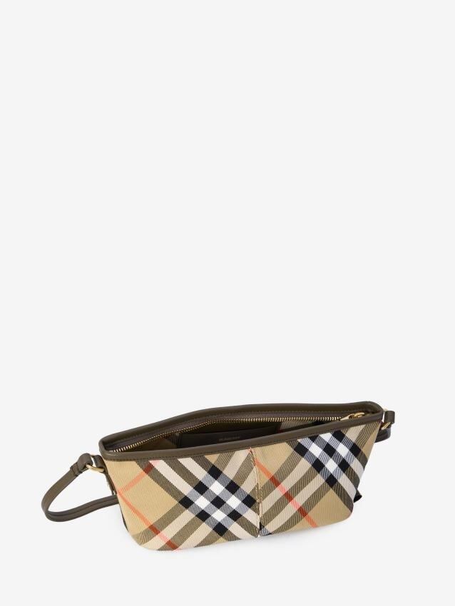 バーバリーチェックのモチーフをジャカード織りした柔らかなコットンツイル素材のミニショルダーバッグ。
